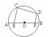 已知:如图,AB是⊙O的直径,CD是⊙O的弦,CE⊥CD交AB于点E,DF⊥CD交AB于点F,垂足分别为C、D。求证:AE=BF。