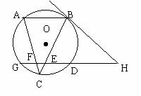 已知:如图,△ABC内接于⊙O,BH是⊙O的切线,⊙O的割线HDG分别交BC和AC于点E、F,且EG·ED=EH·EF,求证:AB∥GH。