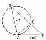 9、(2000哈尔滨)如图(14),经过⊙O上的点A的切线和弦BC延长线相交于点P,若∠CAP=400,∠ACP=1000,则∠BAC所对的弧的度数为( )