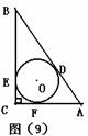 16.如图(9),在Rt△ABC中,⊙O分别切AB、BC、AC于D、E、F三点,AB=10,∠A的余弦值为3/5,则S⊙O=