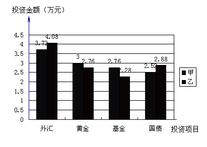 9. 图2是甲、乙两人去年全年各项投资总额的条形统计图。根据统计图,下面对两人的国债投资占各自总投资的比例判断正确的是( * ).