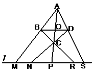 平行于BD,且与AB、DC、BC、AD及AC的延长线分别相交于点M、N、R、S和P。