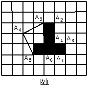 (8分)下图中的方格图均是由边长为1的小正方形组成的,现通过图形变换将图1中阴影部分的图形割补成一个正方形。其思想方法是:由于要拼成的正方形的面积为“5”(由5个小正方形组成),则正方形的边长为,而=。因此,具体做法是:①连结A1A3、A1A5;②将△A1A2A3绕A3沿顺时针方向旋转900;③将△A1A5A6绕A5沿逆时针方向旋转900;④将小正方形A1A6A7A8先向左平移2个单位,再向上平移1个单位。图中四边形A1A3A4A5即是所求作的正方形。仿照此方法将图2中的阴影部分的图形割补成正方形。(要求:直接在图上画出图形,并写出一种具体做法。)