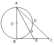 如图,AB是⊙O直径,BC是切线,E是BC上一点。若∠C=45°,