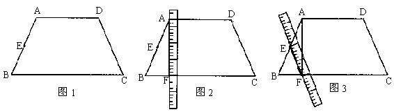 21. 已知:如图1,等腰梯形ABCD中,AD//BC,AB=DC,E为AB的中点,小明手头只有一把带刻度的直尺,他利用直尺上较长的刻度线画出了BC的垂线AF,垂足为F,(如图2),再连结EF。(如图3),然后他问同学小亮:“你知道EF和DC有什么位置关系吗?”