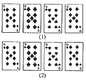 11. 4张扑克牌如图(1)所示放在桌子上,小敏把其中一张旋转180°后得到如图(2)所示,那么她所旋转的牌从左起是
