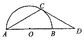 15. 如图,AB是半圆O的直径,点D在AB的延长线上,且BD=OB,点C在⊙O上,