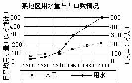 10.下图是某地区用水量与人口数情况统计图.日平均用水量为400万吨的那一年,人口数大约是( )