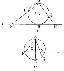24、(12分)如图(1),AB是⊙O的直径,AP、AQ是⊙O的两条弦,过B点作⊙O的切线l,分别交AP、AQ于点M、N。