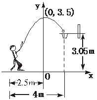 4、如图,一位运动员在距篮下4米处跳起投篮,球运行的路线是抛物线,当球运行的水平距离为2.5米时,达到最大高度3.5米,然后准确落入篮圈.已知篮圈中心到地面的距离为3.05米.