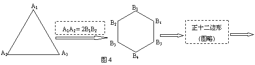 15.如图4,一个正三角形经过变换依次成为正六边形、正十二边形、正二十四边形、….