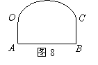 17.已知,如图8,一工厂车间门口由抛物线和矩形ABCO的三边组成,门的最大高度是4.9米,AB=10米,BC=2.4米,若有一个高为4米,宽为2米的长方体形的大型设备要安装在车间,如果不考虑其他因素,设备的右侧离开门边多少米,此设备运进车间时才不致于碰门的顶部 ( ).