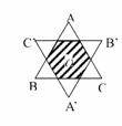 9.如图△ABC中,AB=BC=AC=3,O为它的内心,以O为中心将△ABC旋转1800得到△A/B/C/,则△ABC与△A/B/C/的重叠部分的面积为 ( )
