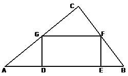 (13分)如图,在一块三角形区域ABC中,∠C=90°,边AC=8,BC=6,现要在△ABC内建造一个矩形水池DEFG,如图的设计方案是使DE在AB上。