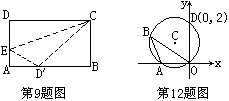 12.如图,⊙C通过原点,并与坐标轴分别交于A,D两点.已知∠OBA=30°,点D的坐标为(0,2),则点A,C的坐标分别为A( , );C( , ).