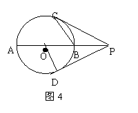 23.如图4:AB是⊙O的直径,点P是AB延长线上一点,PD是⊙O的切线,切点为点D,连结OD,点C是⊙O上一点,且PC=PD.