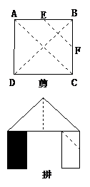 4. 如图,正方形硬纸片ABCD的边长是4,点E、F分别是AB、BC的中点,若沿左图中的虚线剪开,拼成如下右图的一座“小别墅”,则图中阴影部分的面积是( )。