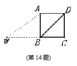 14. 如图,已知正方形ABCD的边长为2.如果将线段BD 绕着点B旋转后,点D落在CB的延长线上的D′点处,那么