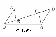 18. 如图,在平行四边形ABCD中,点E、F在对角线BD上,且BE = DF,求证:AE = CF