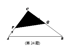 24.已知:如图,△ABC中,∠C=90°,AC=3厘米,CB=4厘米.两个动点P、Q分别从A、C两点同时按顺时针方向沿△ABC的边运动.当点Q运动到点A时,P、Q两点运动即停止.点P、Q的运动速度分别为1厘米/秒、2厘米/秒,设点P运动时间为t(秒).