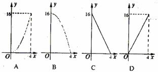 23、(05河南6)如图,Rt△ABC中,∠C = 90º,AC = 4,BC = 8,P是AB上一动点,直线PQ⊥AC于点Q,设AQ = x,则图中阴影部分的面积y与x之间的函数关系的图象是( )