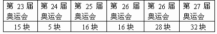10. 2008年第29届奥运会将在我国举行,下面是近6届奥运会中国获得金牌的一览表: