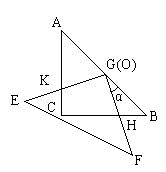 把两个全等的等腰直角三角形ABC和EFG(其直角边长均为4)叠放在一起(如图①),且使三角板EFG的直角顶点G与三角板ABC的斜边中点O重合.现将三角板EFG绕O点顺时针旋转(旋转角α满足条件:0°<α<90°),四边形CHGK是旋转过程中两三角板的重叠部分(如图②)