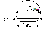12.在直径为10m的圆柱形油槽内装入一些油后,截面如图5所示,如果油面宽AB=8m,那么油的最大深度是______m.