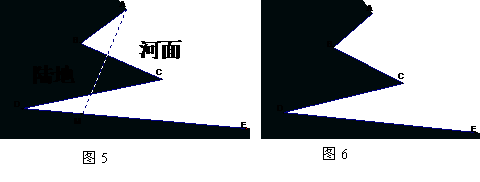 如图5所示,阴影部分是陆地,折线ABCDE是河岸,今要将河岸拉直,需在线段DE上找一点M,将河岸ABCDM变成线段AM,并且河面面积保持不变。