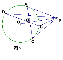 如图7,⊙O的弦AC、BD交于点Q,AP、CP是⊙O的切线,O、Q、P三点共线。求证: