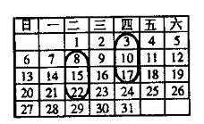17.在右边的日历中, 任意圈出一竖列上相邻的三个数,设中间的一个数n, 则这三个数之和为________(用含n的代数式表示).