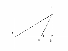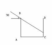 如图(5)为住宅区的两栋楼,它们的高AB=CD=30m,两楼间的距离为AC=24米,现需了解甲楼对乙楼的采光影响情况。当太阳光与水平线的夹角为300时求甲楼的影子在乙楼上有多高(10分)