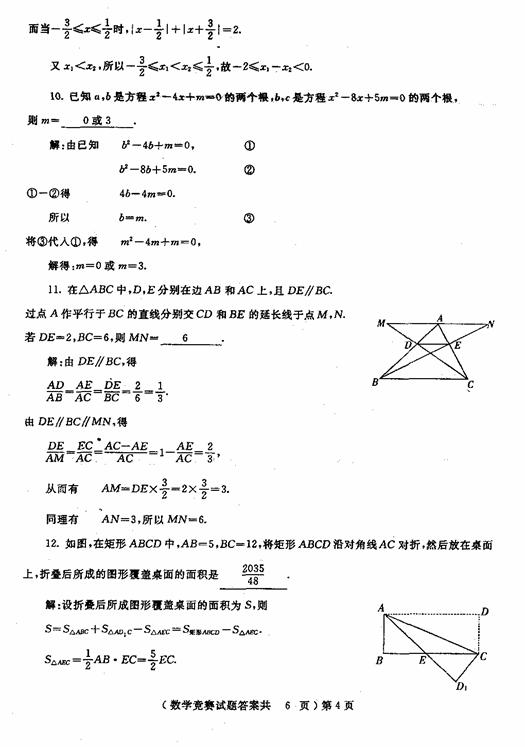 10.已知a,b是方程x2-4x+m=0的两个根,b,c是方程x2-8x+5m=0的两个根,则m=_______