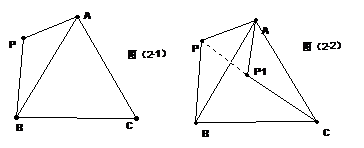 例题(19)、如图(2-1),P为正三角形外一点,且不与A、B在同一直线上,AP=2,BP=3,当此三角形的边长、位置都可改变时,PC的长能否取到最大值?若能取到,求出这个最大值;若不能取到,请说明理由。