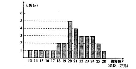 (本小题满分10分)某商场统计了每个营业员在某月的销售额,统计图如下: