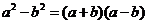 7.[05嘉兴]在边长为a的正方形中挖去一个边长为b的小正方形(a>b)(如图1),把余下的部分拼成一个矩形(如图2),根据两个图形中阴影部分的面积相等,可以验证