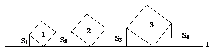 13.[05温州]在直线l上依次摆放着七个正方形(如图所示)。已知斜放置的三个正方形的面积分别是1、2、3,正放置的四个正方形的面积依次是S1、S2、S3、S4,则S1+S2+S3+S4=__ _____。