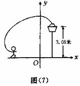 (8分)如图(7)一位篮球运动员跳起投篮,球沿抛物线y=-x2+3.5运行,然后准确落人篮框内。已知篮框的中心离地面的距离为3.05米。