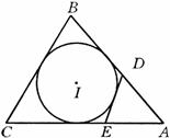 如图7,⊙I为△ABC的内切圆,AB=9,BC=8,CA=10,点D、E分别为AB、 AC上的点,且DE为⊙I的切线,求△ADE的周长.