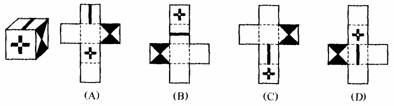 4. 如图,将左方一的盒子展开成为一个十字型图形,它是下图中的 ( )