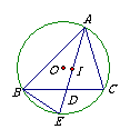 如图,点I是ΔABC的内心,AI的延长线交BC于点D,交ΔABC的外接圆于E,若IE=4,AE=8,那么DE的长。