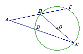 如图,A为⊙O外一点,过A作两条直线分别与⊙O交于B、C和D、E点.若BE为⊙O直径,AB=12,DE=30,AD=BC.求∠A的度数和BE的长.