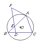 如图,已知⊙O的内接ΔABC,D在BC上,过D点作AC的平行线交AB于E点,交过A的直线于F点,且BE·AE=DE·EF。求证:AF是⊙O的切线。