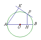 如图,AB为⊙O直径,自圆上一点P作AB的垂线PH,垂足为H,自点A向过P点的切线作垂线,垂足K。求证:AH=AK。