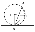 2、如图,⊙O切BT于B,∠CBT=430,则圆周角∠BAC的度数为_____,圆心角∠BOC的度数为______。