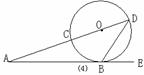 4、如图(4),CD是⊙O的直径,AE切⊙O于B,DC的延长线交AB于A,∠A=20°,则