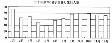38、某校九年级的初中学生共796名,学生的出生月份统计如下,根据图5中数据回答以下问题: