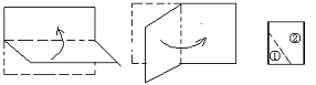 一张矩形纸片纸对折(如图),然后沿着图中的虚线剪下,得到①、②两部分,将①展开后得到的平面图形是( )