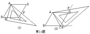 5.用两个全等的等边三角形△ABC和△ACD拼成菱形ABCD.把一个含60°角的三角尺与这个菱形叠合,使三角尺的60°角的顶点与点A重合,两边分别与AB、AC重合.将三角尺绕点A按逆时针方向旋转.(6分)