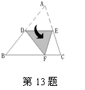 13、如图,D、E为△ABC两边AB、AC的中点,将△ABC沿线段DE折叠,使
